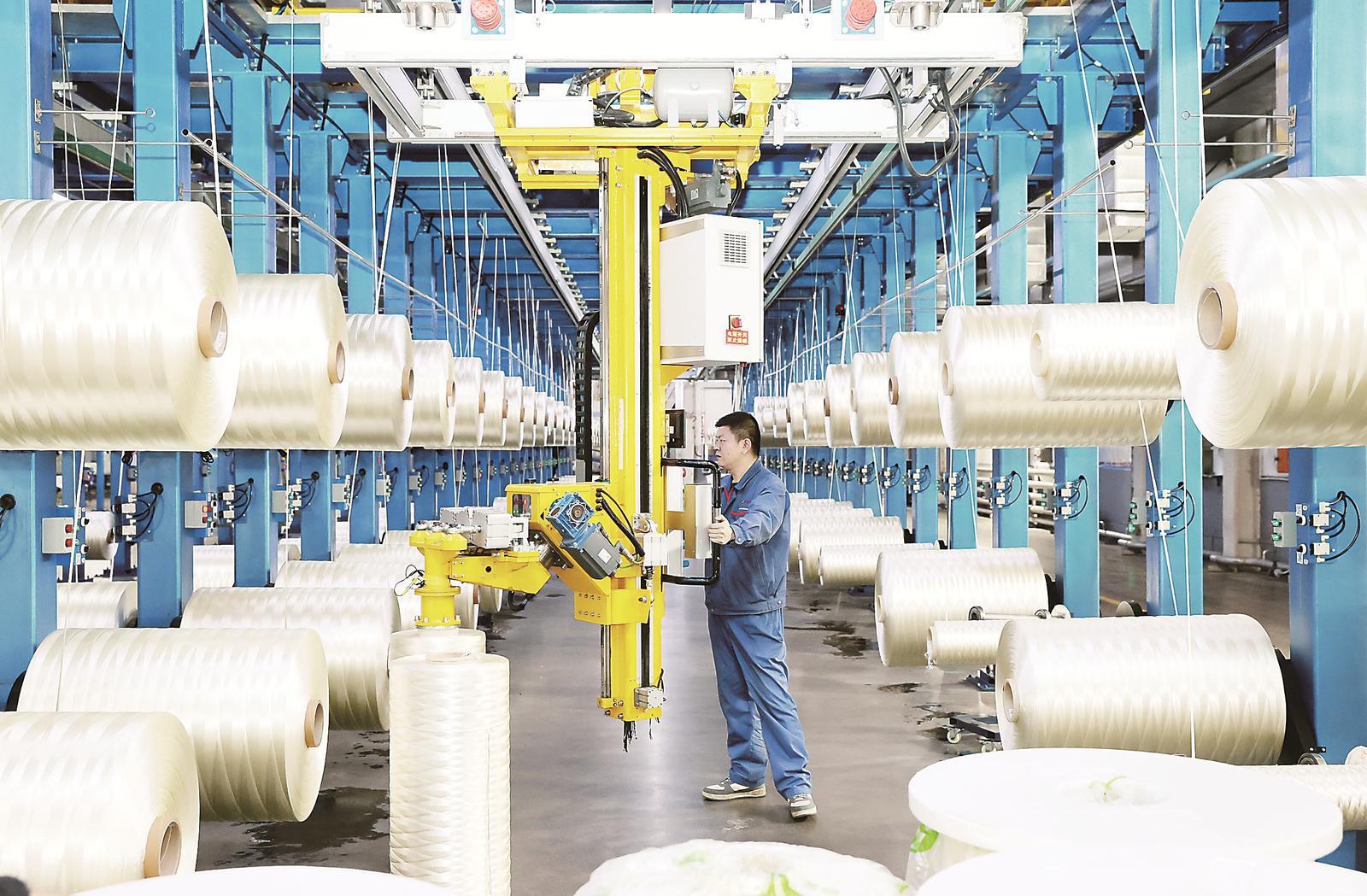吉林化纤集团不竭优化用能布局,提拔能源效率,全面推进出产线智能化升级。图为公司出产车间。丁研 摄。